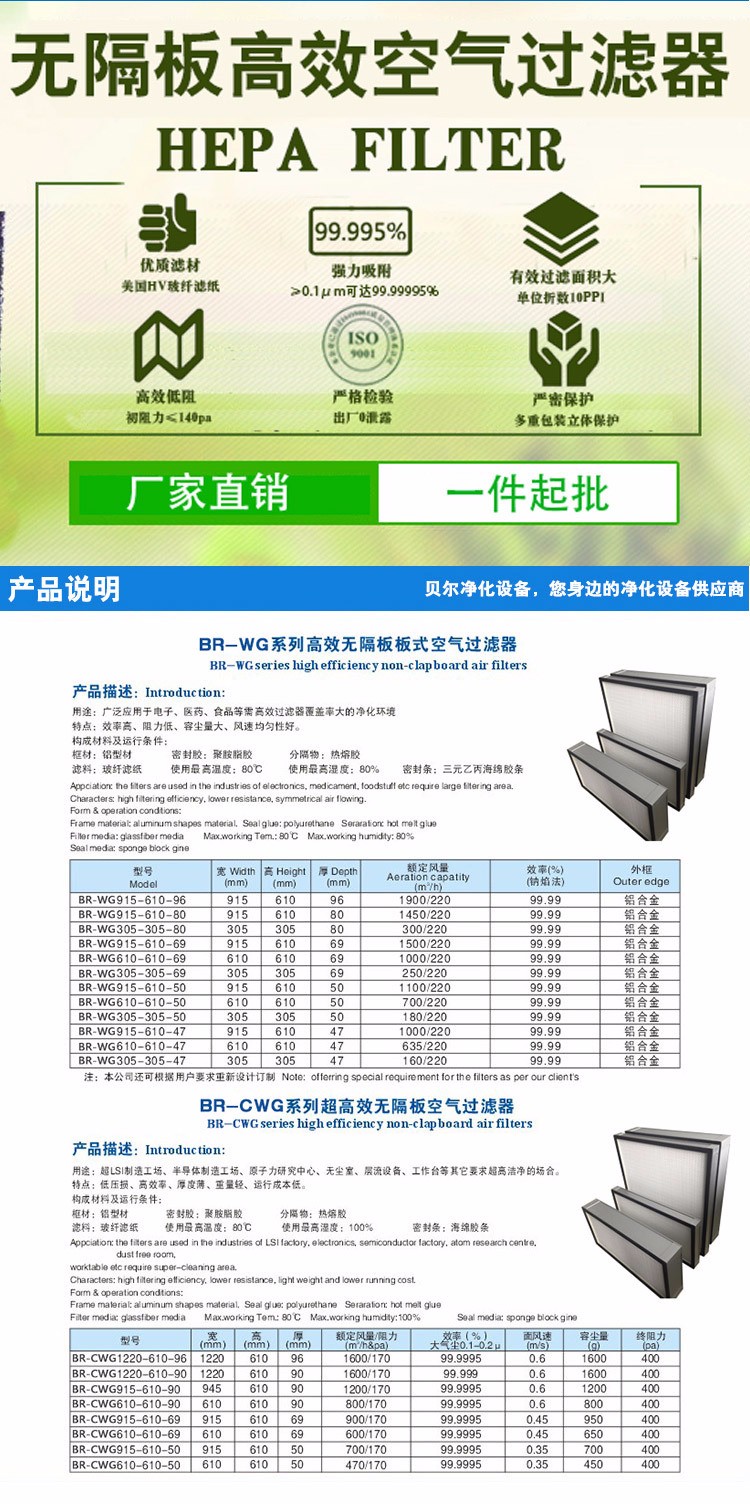 無(wú)隔板**HEPA空氣過(guò)濾器